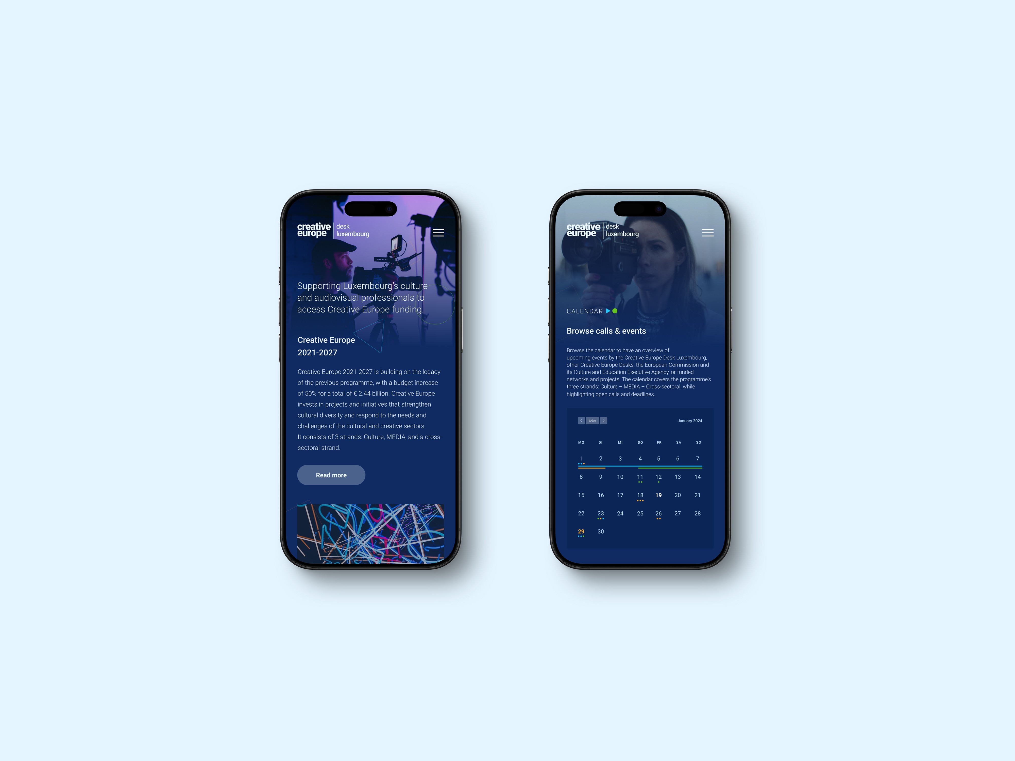 Creative Europe serves as the European Commission's comprehensive funding framework designed to bolster cultural and creative industries across the region. As part of my permanent position as a ui designer at custom coding, I designed the complete digital identity for Creative Europe Luxembourg, taking the project from initial branding concepts through to final user interface implementation. The work began with developing a cohesive brand strategy that honored the European Commission's Creative Europe framework while establishing a distinct identity for the Luxembourg branch.